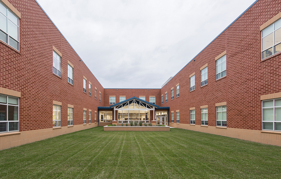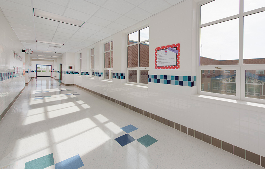 Interior finishes consist of painted CMU and drywall, acoustical ceilings, VCT flooring with precast terrazzo stair treads. Site amenities included a new soccer field, softball field and walking track.