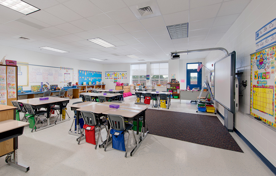 The project is a new 102,000 sq ft, 2-story elementary school located in Loudoun County, VA. The 2- story section of the building is a structural steel and composite deck structure with load bearing masonry walls at the single story areas. The exterior is a brick veneer with an EPDM roof system and standing seam metal roof accents.