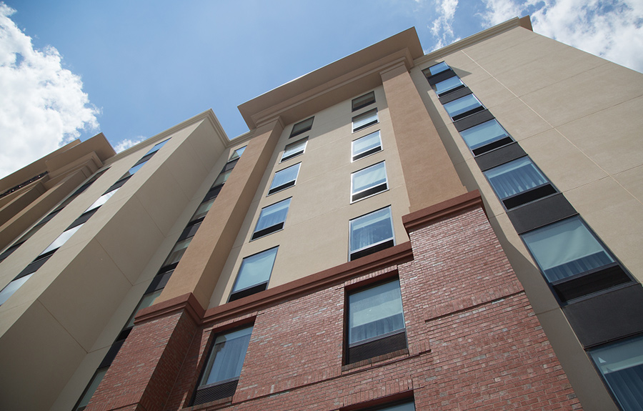 The hotel is eight stories and has amenities such as an indoor pool, exercise room, conference room, business center, breakfast area. Construction includes a concrete underground parking area for this pre-cast concrete plank structure.