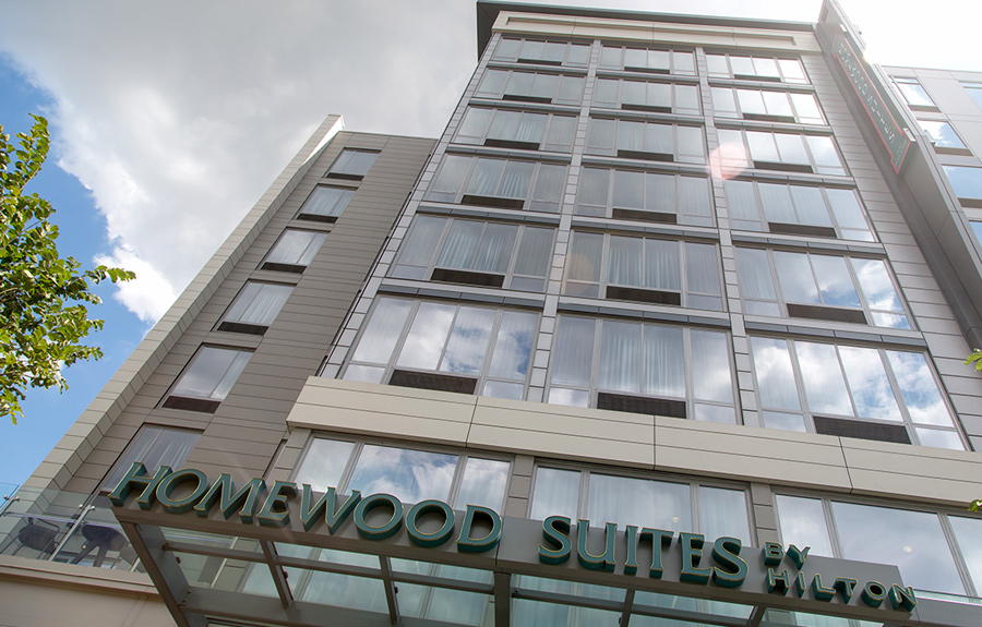 Scheibel Construction served as the Construction Manager of this project. The project consists of two hotels within one structure containing 235 guest rooms. The hotel is nine stories high including one level of underground parking. This is a concrete structure with upper decks being post-tension. There is additional parking located on the 2nd floor garage deck. The 2nd floor is a common area to be shared between the hotels consisting of meeting rooms, work out room, and indoor pool/spa area.