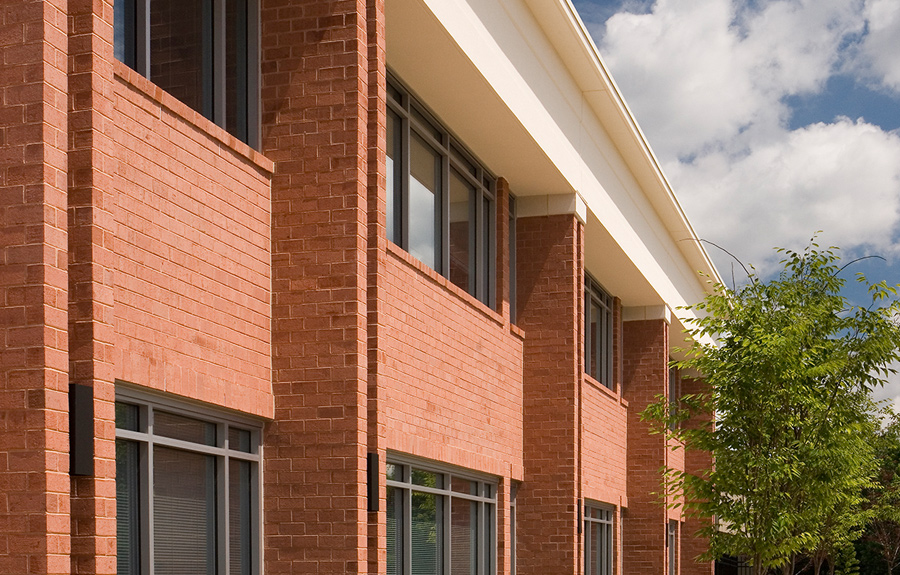 For the new regional headquarters for Long Fence, Inc. a combination of Pre-Engineered Metal Building warehouse adjoins a two story conventionally constructed office space. The 17,000 s.f. office space is masonry and steel bearing with built-up roofing. The 17,000 s.f. conditioned warehouse utilized sidelight panels to take advantage of natural light and sits upon a 10” reinforced concrete slab. Three separate three sided PEMB storage buildings were also constructed on the 4.6 acre site.