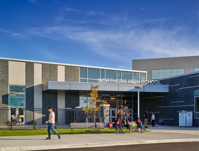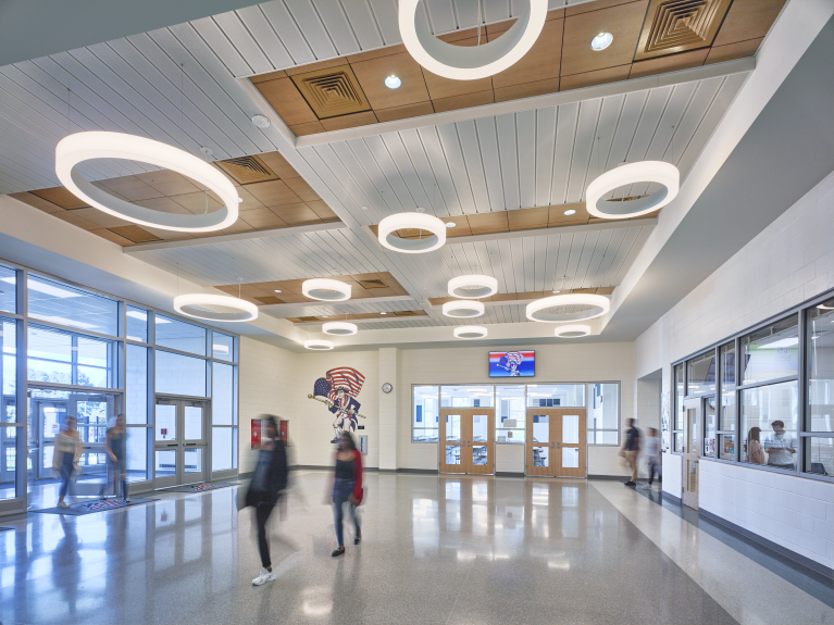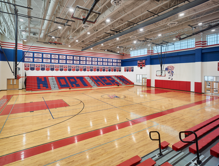This project includes the new construction of a 204,000 sq ft high school, administration building, addition to the existing Mary Harrison Cultural Arts Center. The phasing included constructing the new high school followed by demolition of the existing high school and adjacent gymnasium and construction of the new administration building, Mary Harrison addition, and bus loop and parking lots. The completed LEED Silver project features a geothermal field under the existing baseball field, a 3-level classroom section, gymnasium, media center, cafeteria, enclosed walkways interconnecting the high school to the administration building and Mary Harrison Cultural Arts Center, and stadium upgrades including new grandstands and lighting.