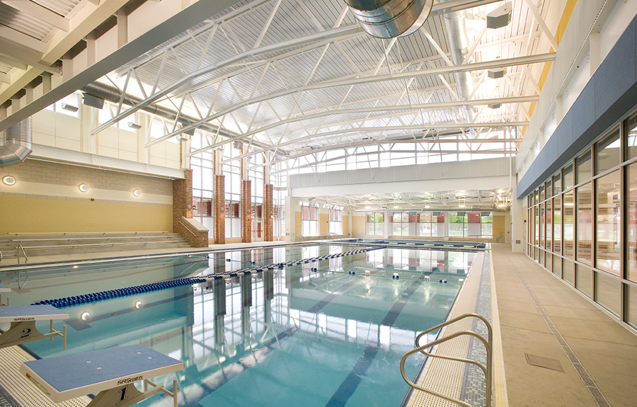 This 32,500 square foot building includes an indoor competition pool as well as a therapy pool. In addition, there is a weight room and two wellness labs supported by full locker rooms and administrative spaces.