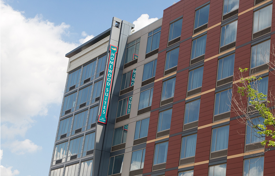 Scheibel Construction served as the Construction Manager of this project. The project consists of two hotels within one structure containing 235 guest rooms. The hotel is nine stories high including one level of underground parking. This is a concrete structure with upper decks being post-tension. There is additional parking located on the 2nd floor garage deck. The 2nd floor is a common area to be shared between the hotels consisting of meeting rooms, work out room, and indoor pool/spa area.