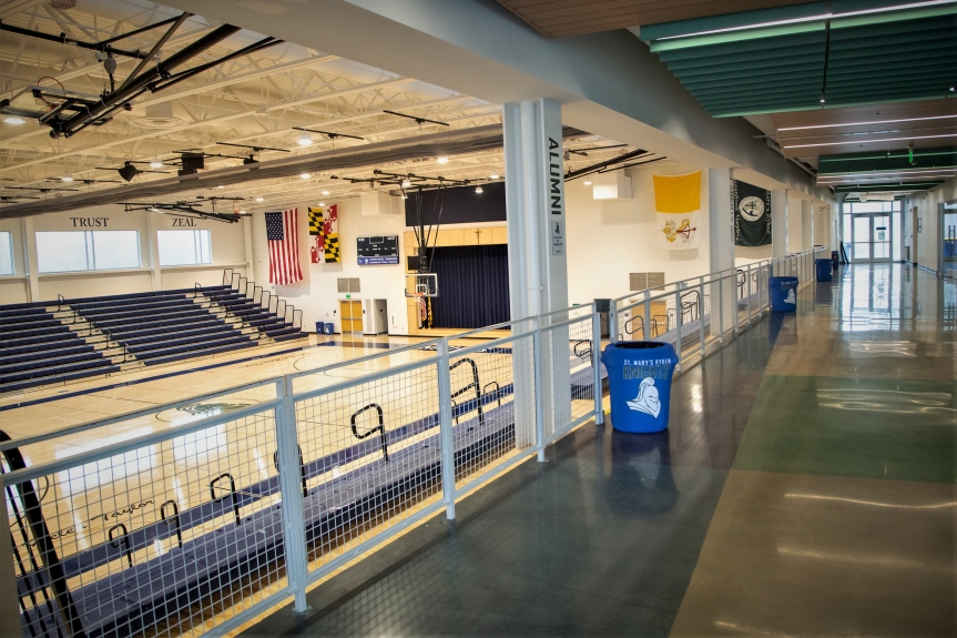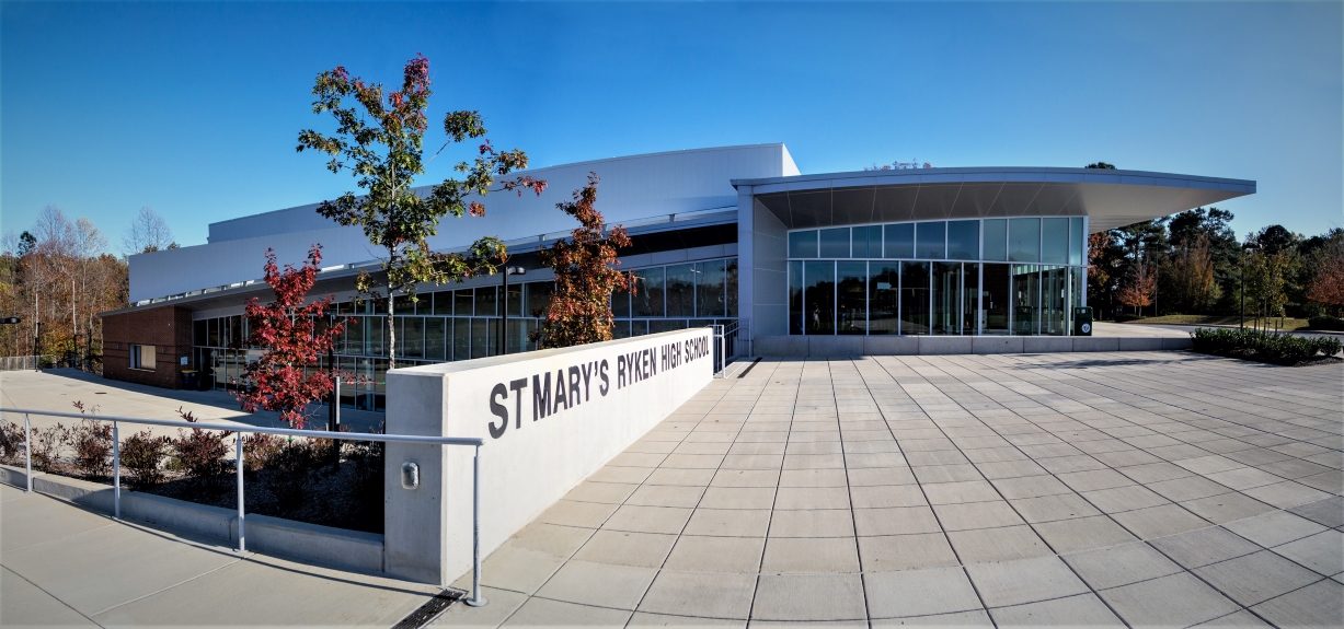 St. Mary’s Ryken High School selected Scheibel Construction for management services during both preconstruction and construction phases of their new 49,094 sf, 3-story athletic center. This facility is located on their existing campus in Leonardtown, MD and hosts a gymnasium, locker rooms, fitness spaces, offices, and public gathering spaces.